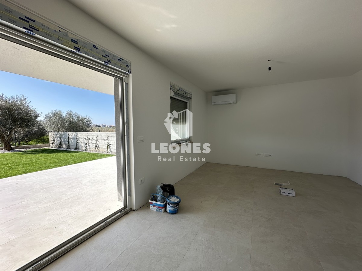 Stanovanje v pritličju z lepo urejenim dvoriščem na robu gradbene cone v Novigradu