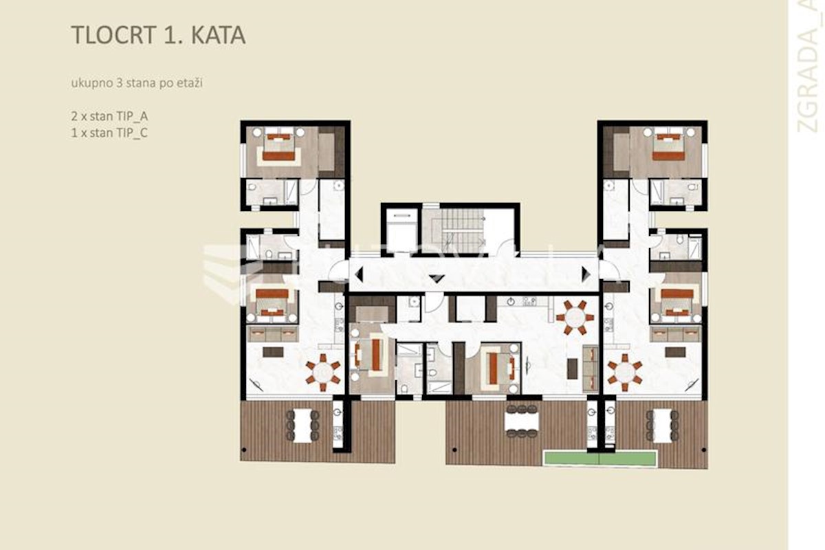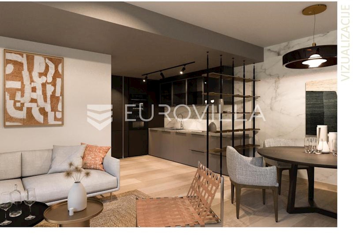 Istra, Novigrad, u modernoj novogradnji, stan NKP 115,88 m2 s dvije spavaće sobe na 1. katu zgrade sa 6 stanova. Stan (A-1-C) zatvorene površine 80,60 m2 sastoji se od ulaznog djela, open space koncepta kuhinje, dnevnog boravka i blagovaone, master spavać