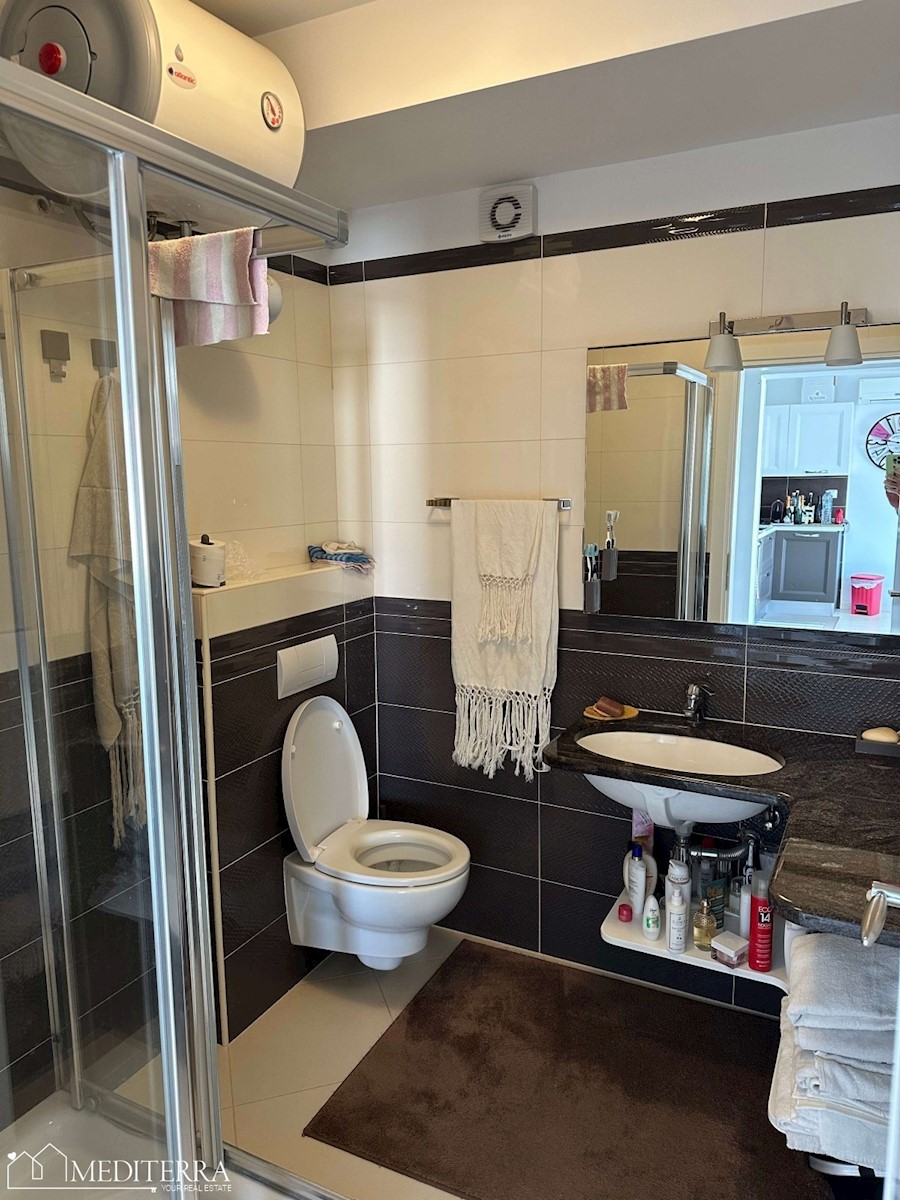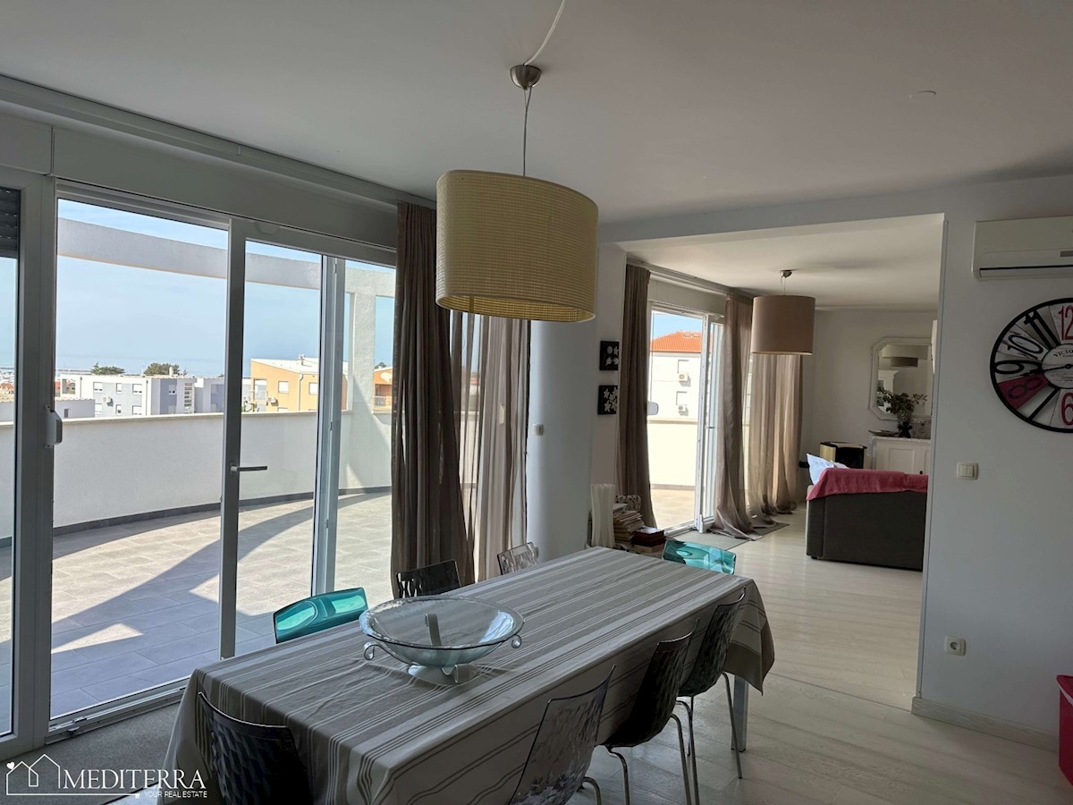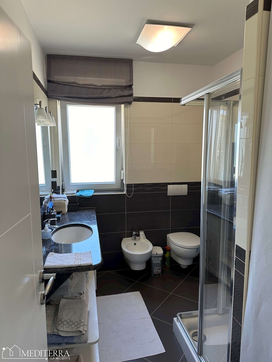 Prodaje se stan u Novigradu od 118m2 sa predivnim pogledom na more. Udaljen samo 500 metara od plaže i 500 metara od centra grada. Nalazi se na drugom katu i sastoji se od 3 spavaće sobe, 2 kupatila, dnevnog boravka i kuhinje sa izlaskom na veliku terasu.