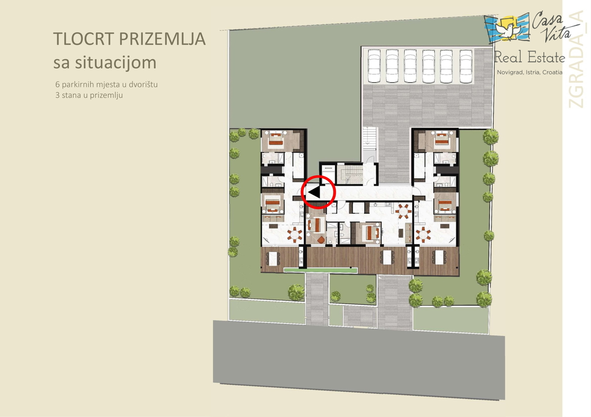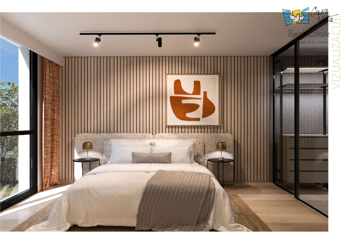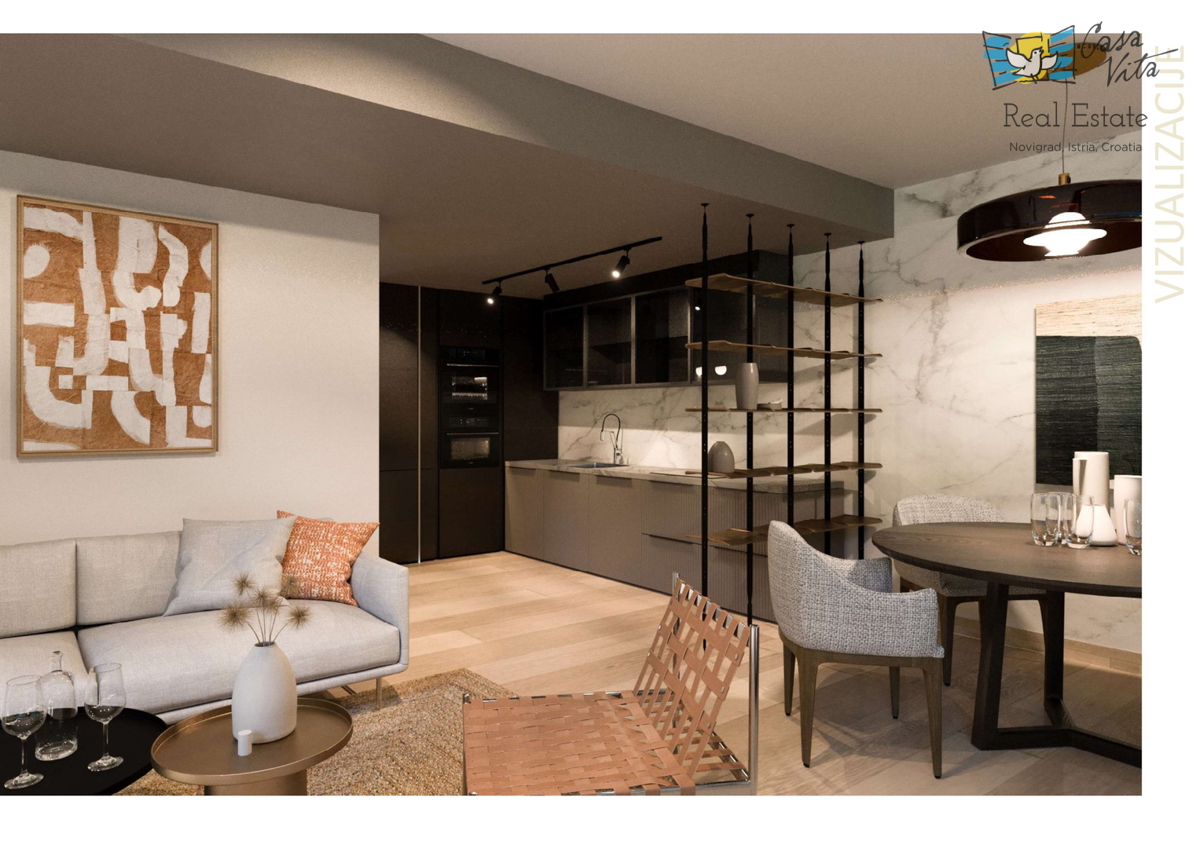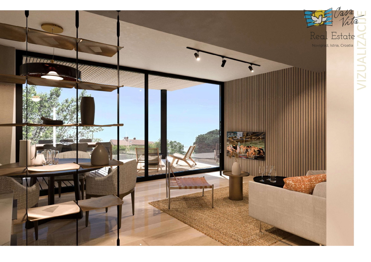 Istra, Novigrad U Novigradu, na samo 1km od centra grada i lijepih plaža, u izgradnji su 2 stambena objekta sa po 8 stanova svaki. Građenje je započelo početkom ožujka 2024.g., a predviđeni rok za završetak građenja je svibanj 2025.g. Zgrade su skladne,