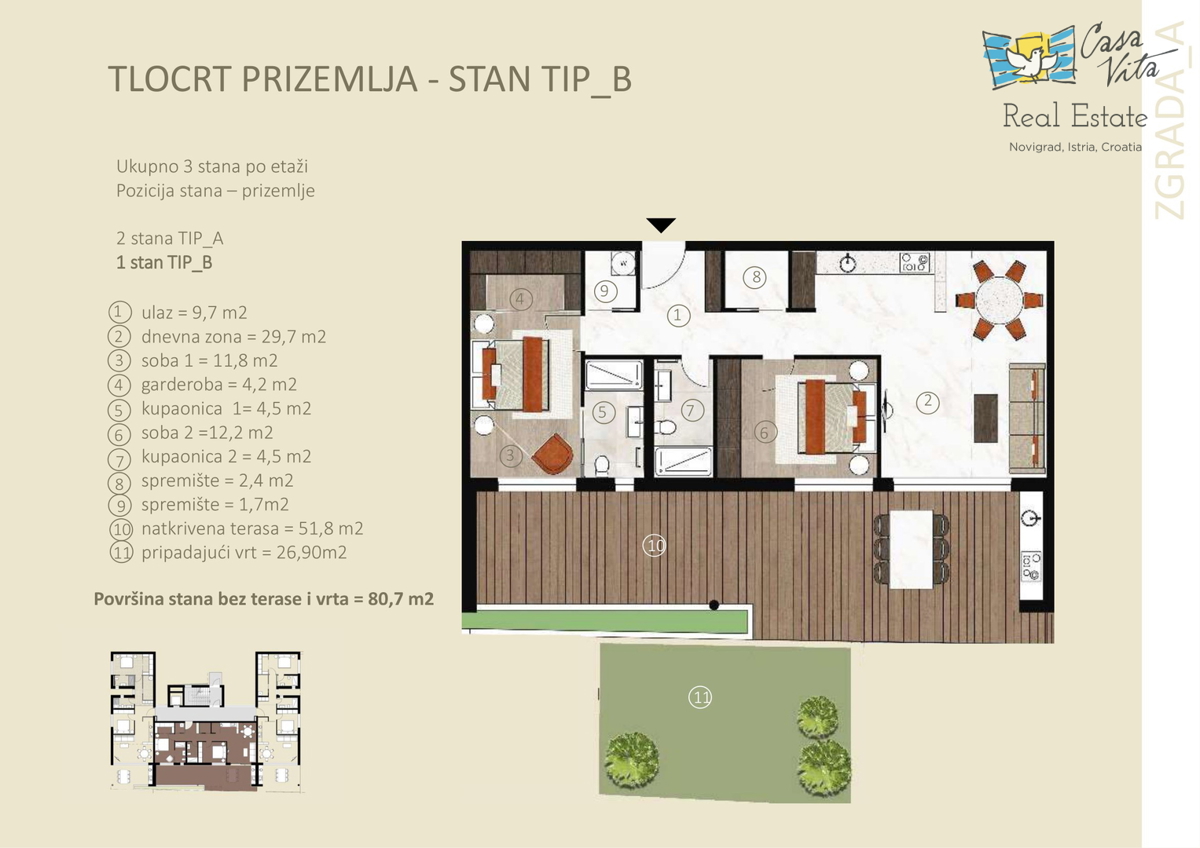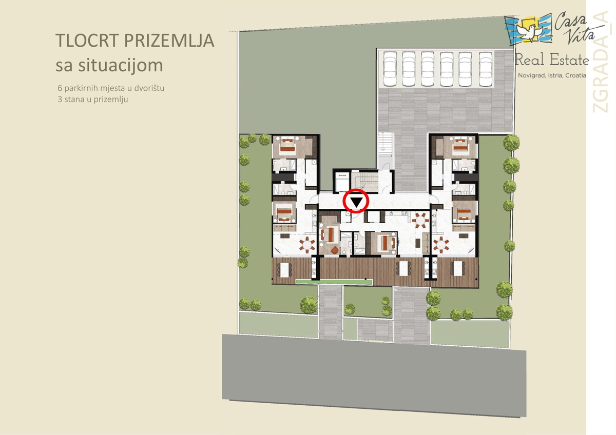 Istra, Novigrad U Novigradu, na samo 1km od centra grada i lijepih plaža, u izgradnji su 2 stambena objekta sa po 8 stanova svaki. Građenje je započelo početkom ožujka 2024.g., a predviđeni rok za završetak građenja je svibanj 2025.g. Zgrade su skladne,