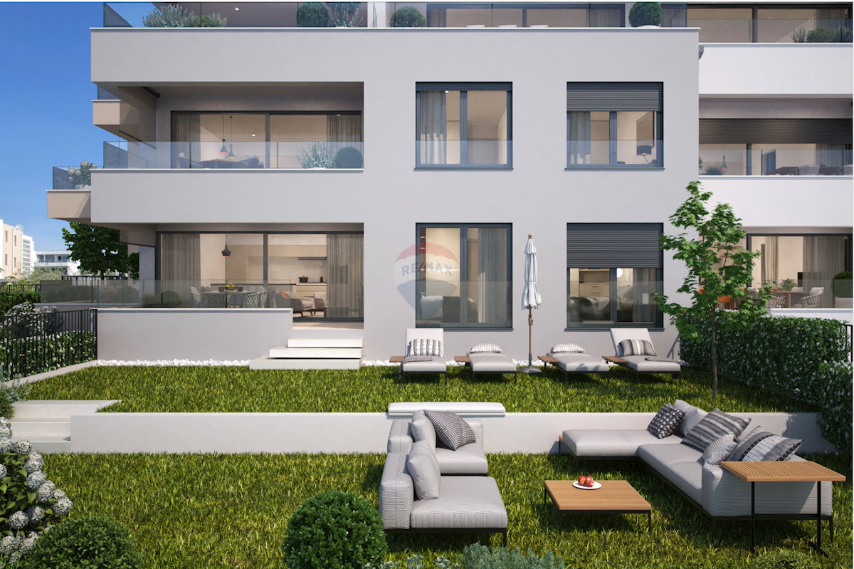 Stan je smješten u prizemlju moderne zgrade od osam luksuznih stanova u izgradnji. Ukupna površina stana iznosi 105,80 m2. Stanu pripada okućnica na kojoj po želji budućeg kupca može se izgraditi bazen i dva parkirna mjesta. Sastoji se od prostranog