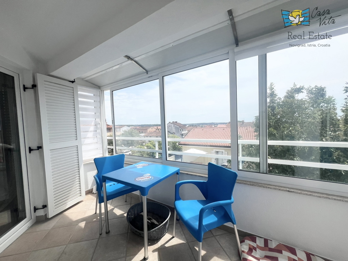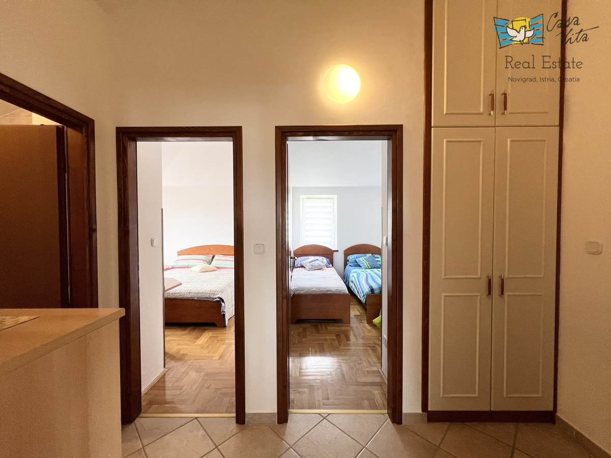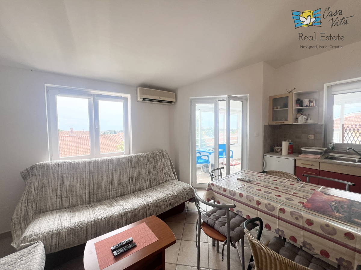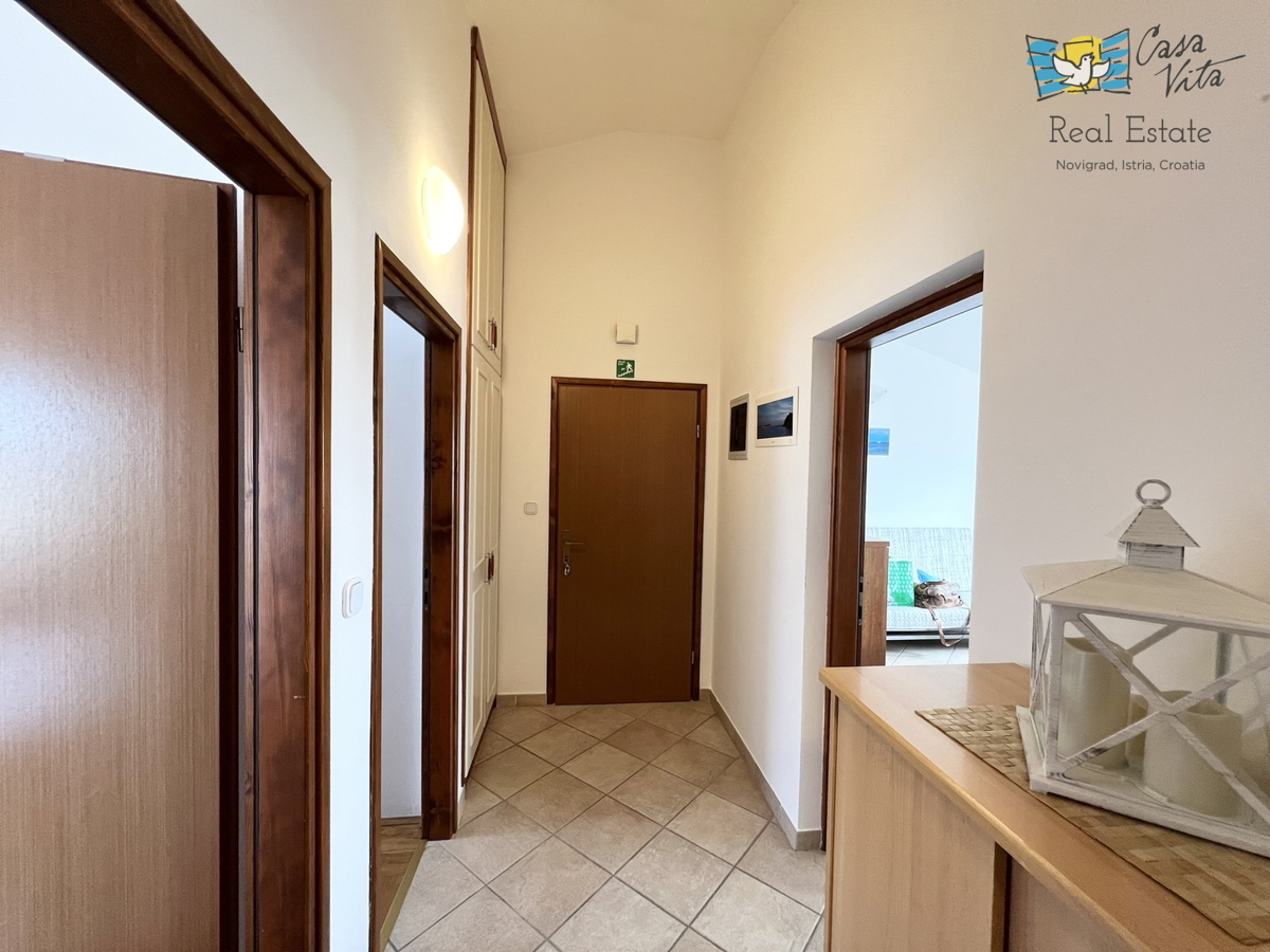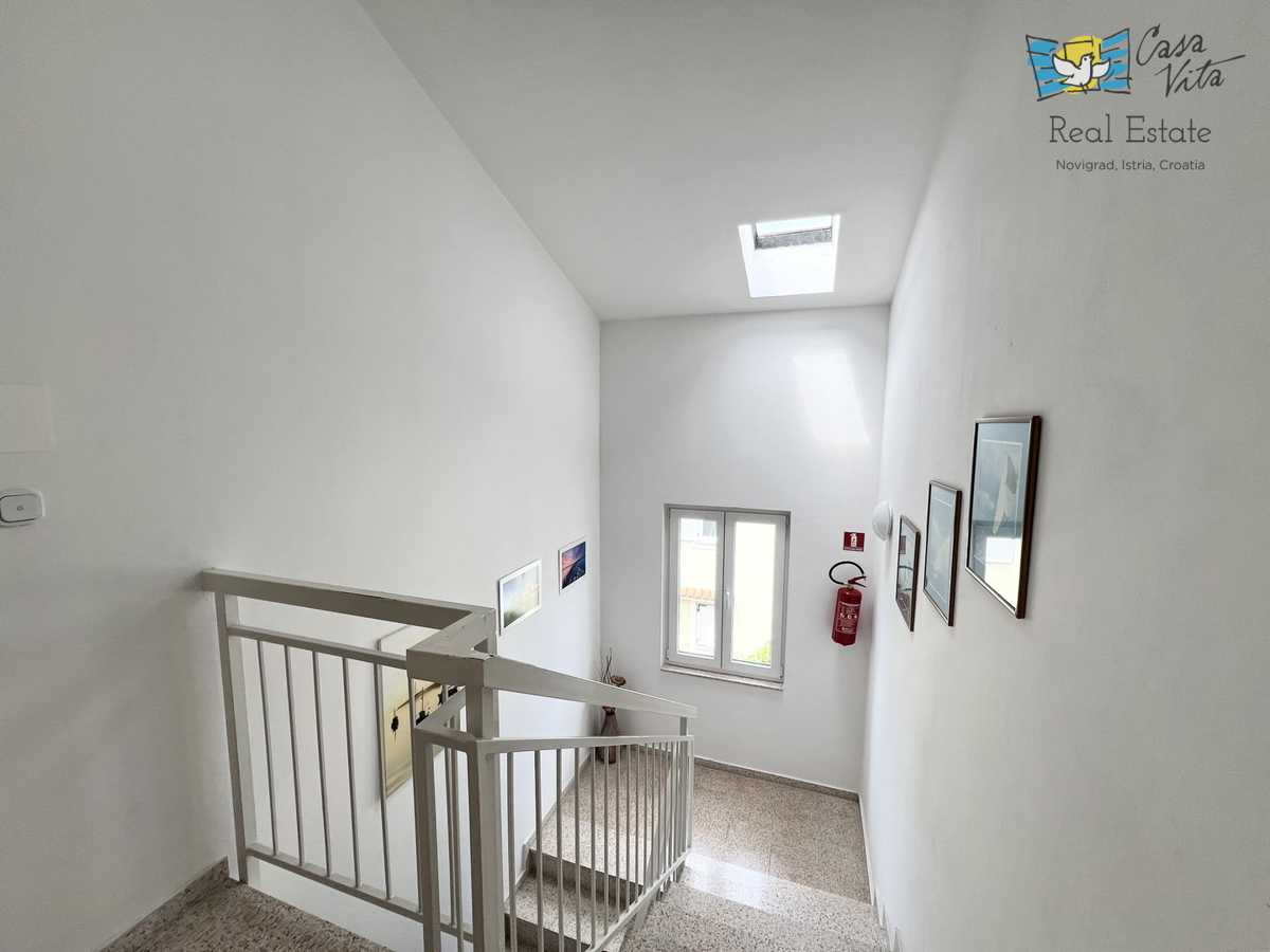 Istra, Novigrad Prodaje se stan na drugom katu stambene zgrade s čarobnim pogledom na more. Stan ima 50 m² i savršeno je iskorišten te se sastoji od dvije udobne spavaće sobe, kupaonice, prostranog dnevnog boravka s kuhinjom i blagovaonicom. Iz dnev