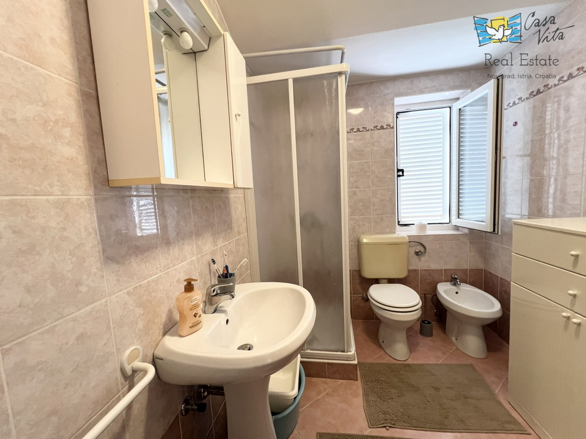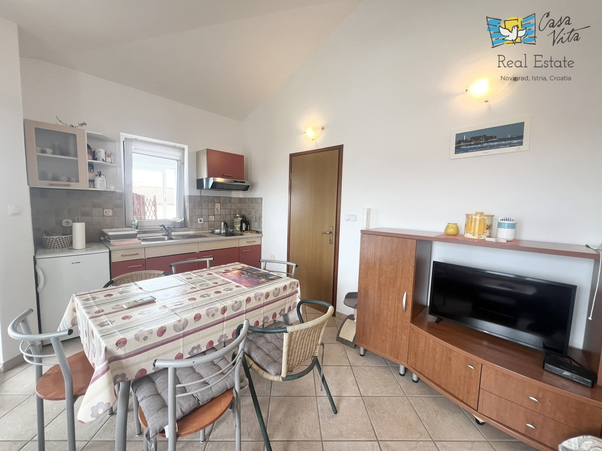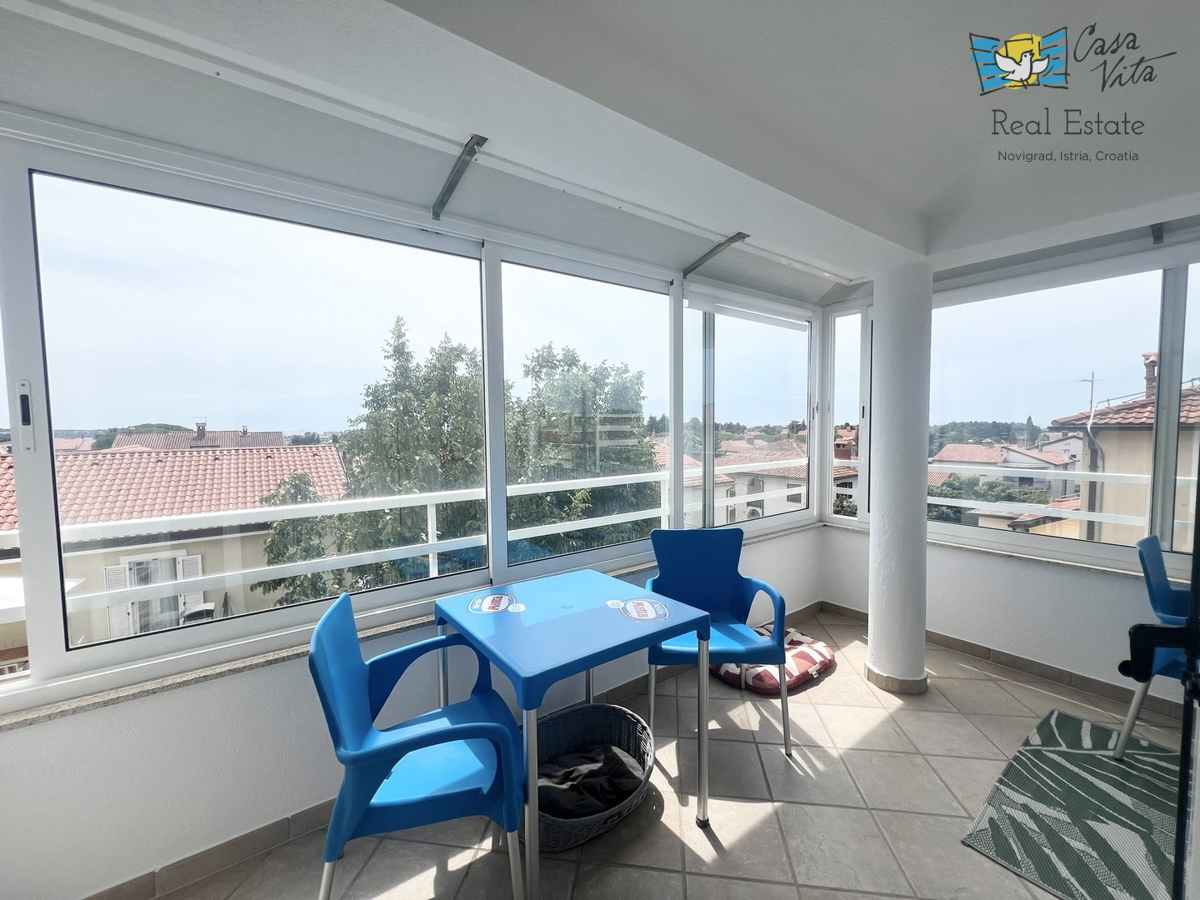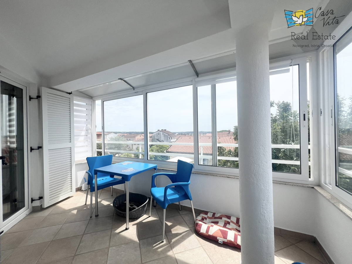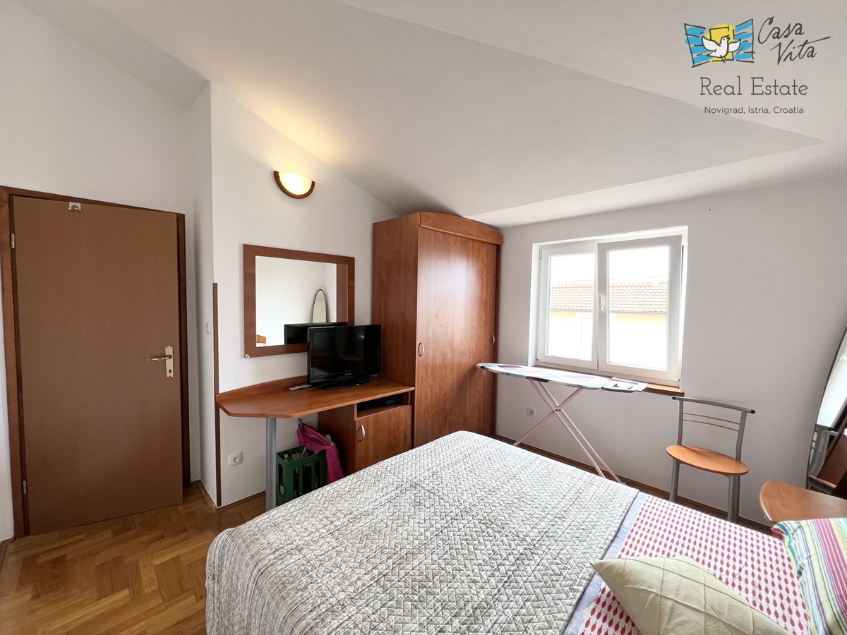 Istra, Novigrad Prodaje se stan na drugom katu stambene zgrade s čarobnim pogledom na more. Stan ima 50 m² i savršeno je iskorišten te se sastoji od dvije udobne spavaće sobe, kupaonice, prostranog dnevnog boravka s kuhinjom i blagovaonicom. Iz dnev
