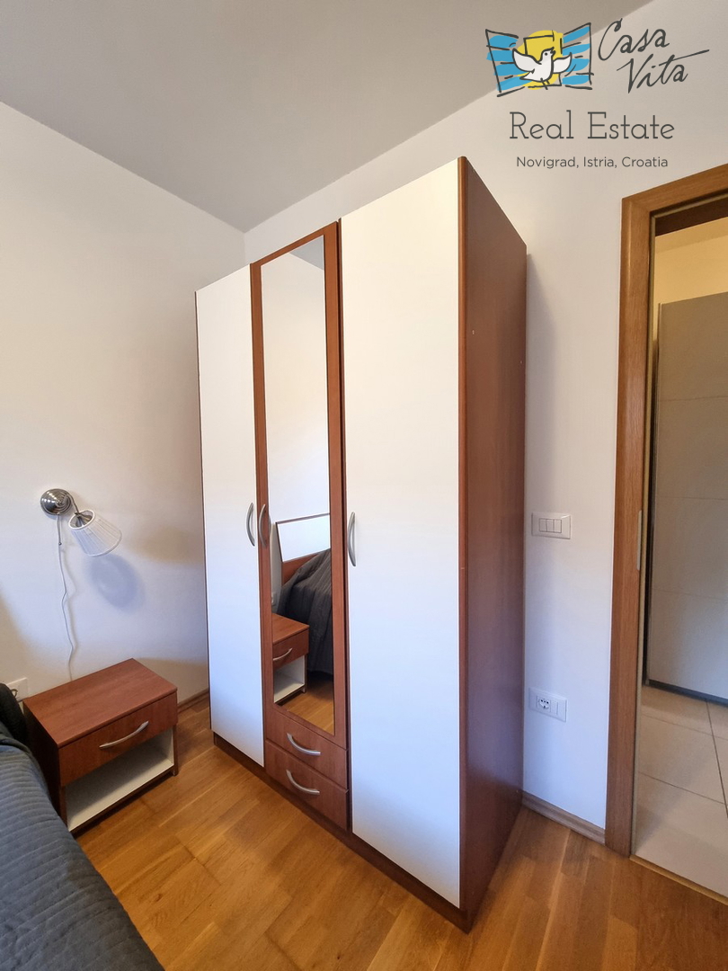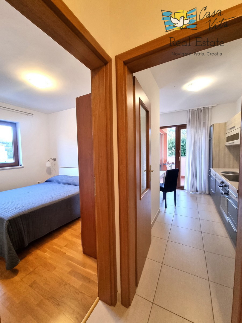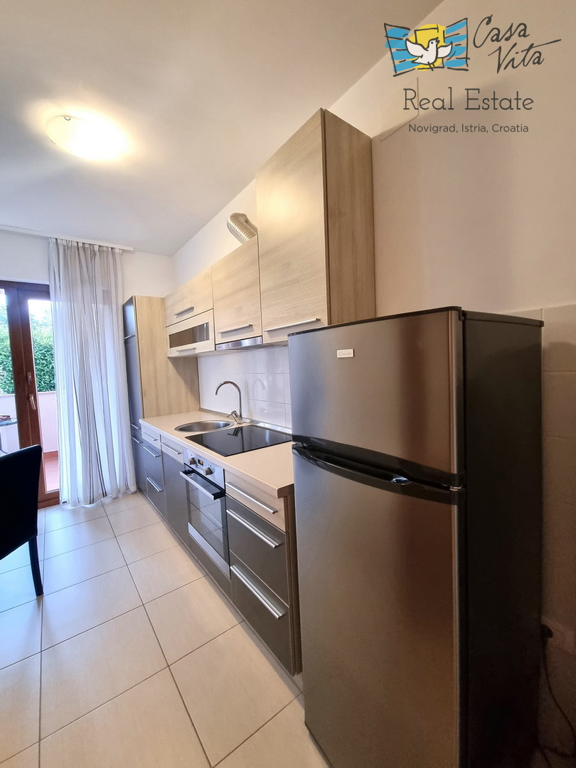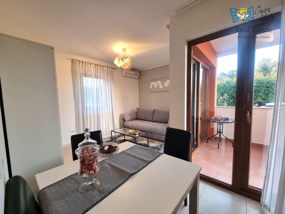 Istra, Novigrad Prodaje se manji stan stan od 42,70 m2 nalazi se u prizemlju zgrade nedaleko od centra grada Novigrada i uređenih plaža. Zgrada je izgrađena 2009. godine. Kompletno je opremljen i uređen, te se tako i prodaje. Sastoji se od ulaznog hodni