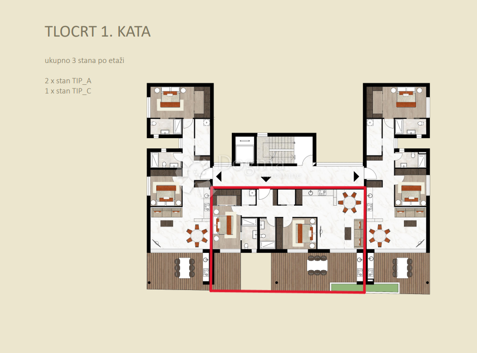 NAJPOŽELJNIJA NOVOGRADNJA U GRADU - STAN A-1-C, NA 1. KATU S POGLEDOM NA MORE
