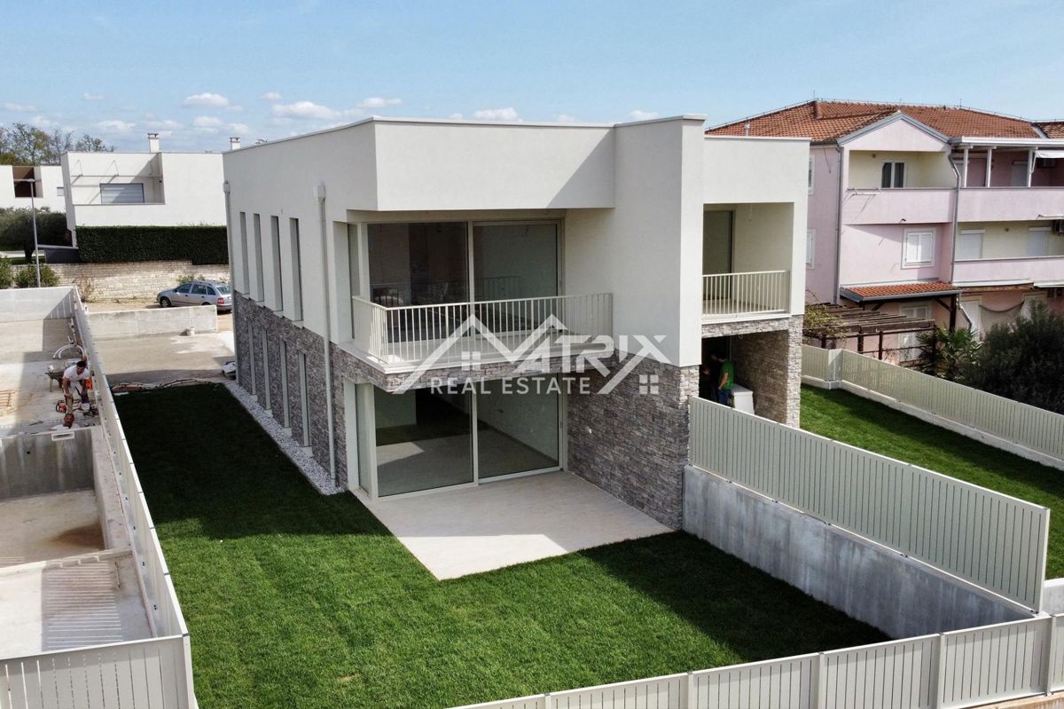 Nalazi se u tihoj ulici, na svega nekoliko minuta vožnje od centra Novigrada, ovaj moderan stan nudi izvanrednu priliku za udoban život ili investiciju u turizam. S površinom od 80 m2, ovaj stan u prizemlju nove zgrade nudi prostoriju dnevnog boravka s ot
