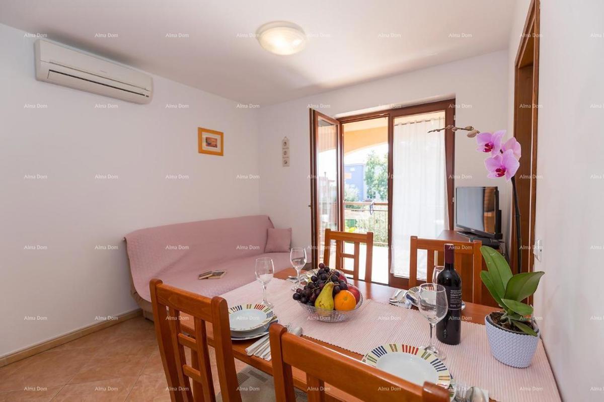 U Novigradu na atraktivnoj lokaciji, smjestio se ovaj stan površine 67 m 2, prenamjenjen u dva manja. Posjeduje bazen i vrt koji je na zajedničko korištenje. Udaljenost od mora 700 metara, a od centra 1000 m. Odlična pozicija Novigrada. Posjeduje parkirno