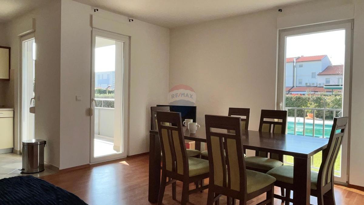 RE/MAX Centarnekretnina iz svoje ponude izdvaja, prostran stan sa izlazom na zajednički bazen. Nedaleko od centra grada i uređenih plaža, u mirnom naselju, prodaje se prekrasan stan s puno prirodne svjetlosti. Smješten u prizemlju manje stambene zgrade s