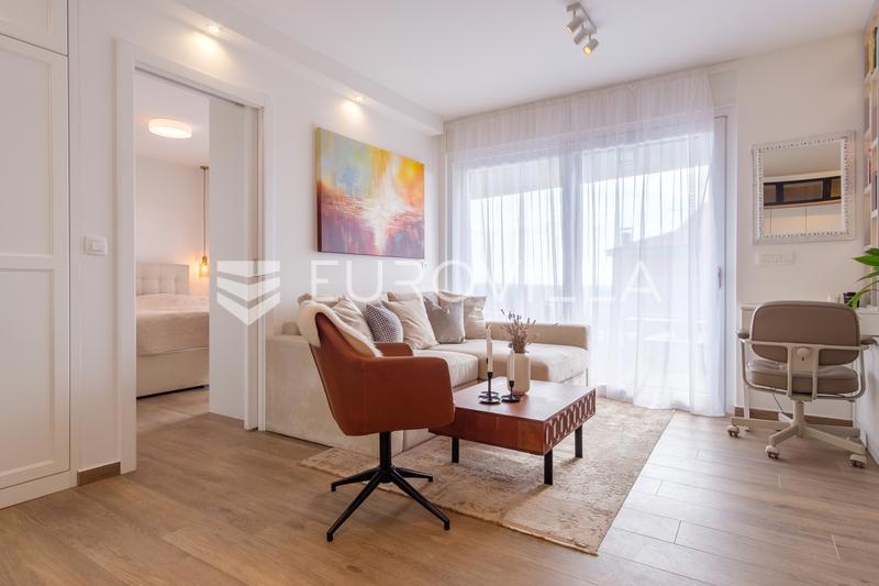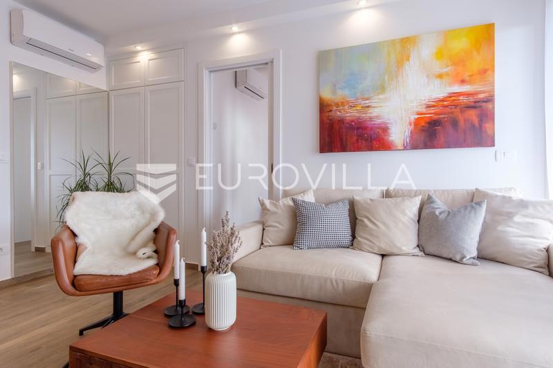 Prodaje se luksuzan stan na prvom katu stambene zgrade ukupne neto površine 65,67 m2, s pripadajuća dva parkirna mjesta, svaki površine 12,5 m2. Savršen spoj udobnosti i modernog dizajna čini ovaj stan izvrsnim izborom za sve koji traže kvalitativan život
