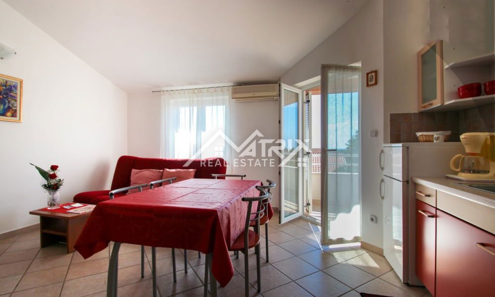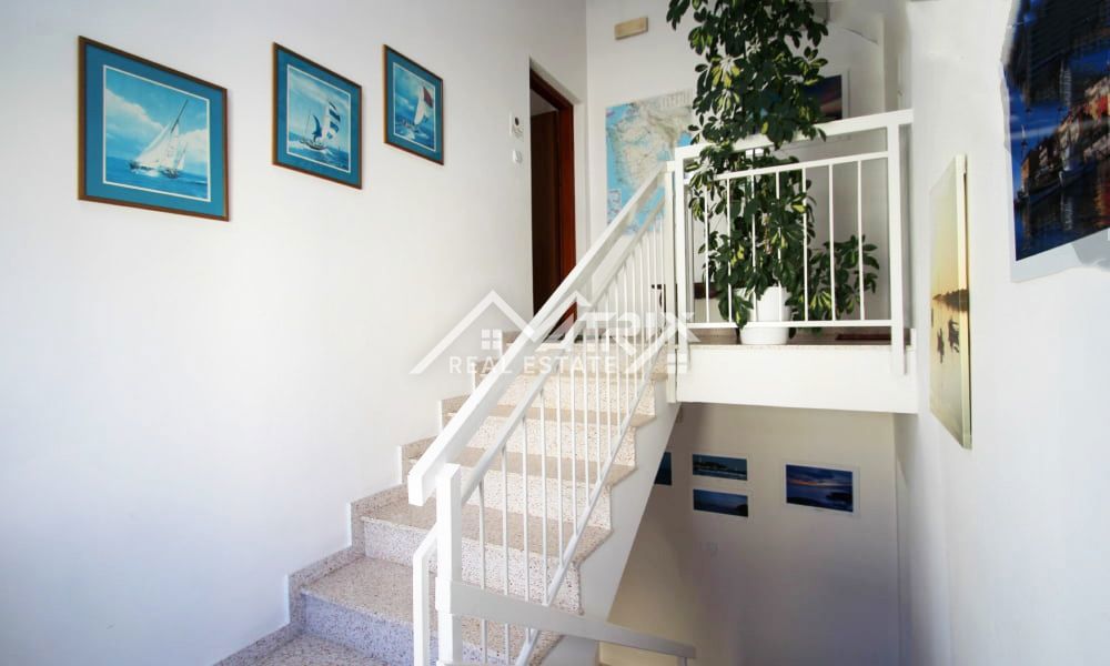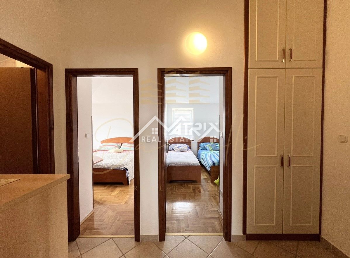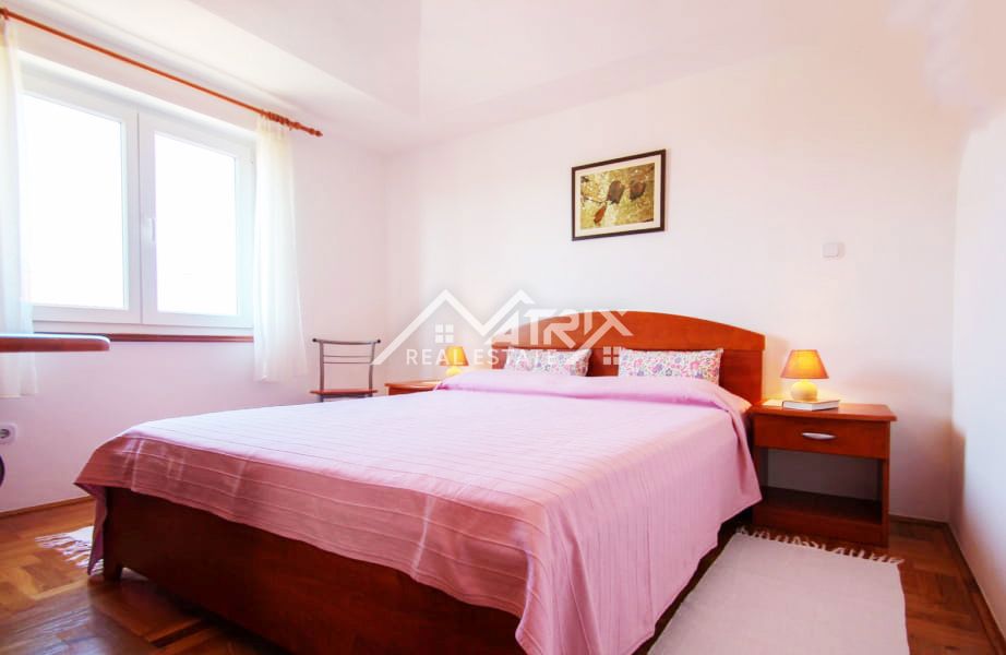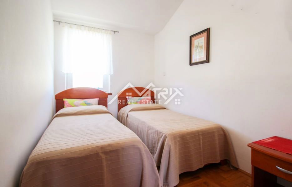 Na prodaju prekrasan stan s pogledom na more Ovaj šarmantni stan smješten je na drugom katu stambene zgrade i pruža nezaboravan pogled na more. Površine 50 m², stan je savršeno raspoređen, a sastoji se od dvije udobne spavaće sobe, moderne kupaonice i pro