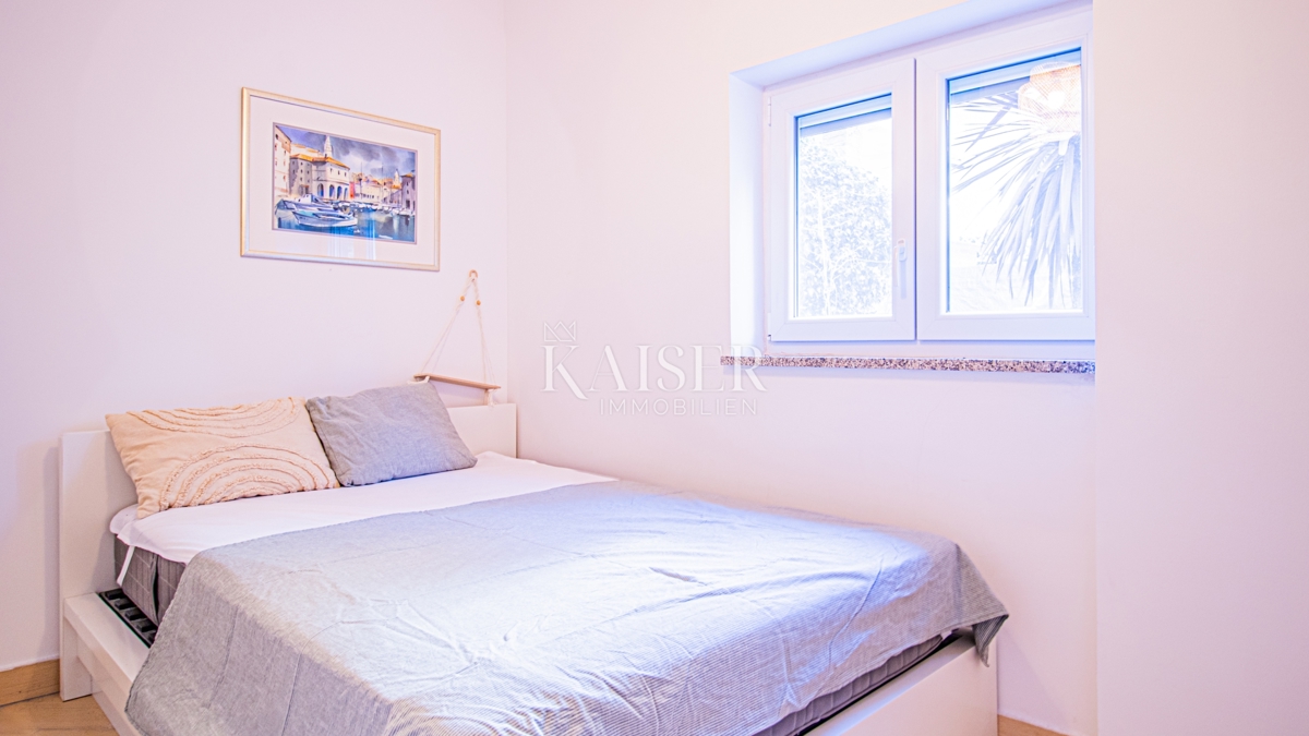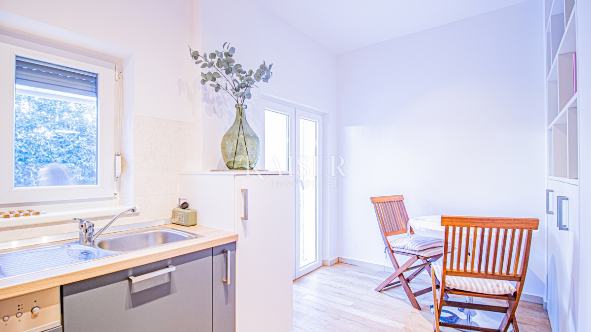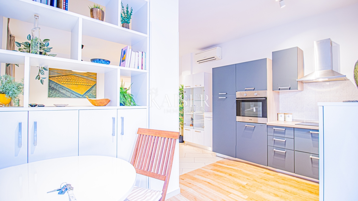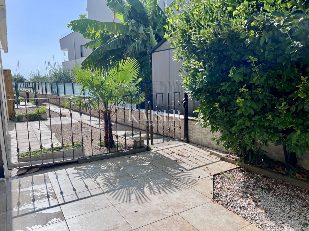 Kaiser Immobilien nudi u prodaju potpuno namješten stan u prizemlju moderne zgrade u samoj marini, svega 150 metara od mora! Ova atraktivna nekretnina površine 61,17 m² pruža savršen spoj udobnosti, funkcionalnosti i vrhunske lokacije. Ne propustite p