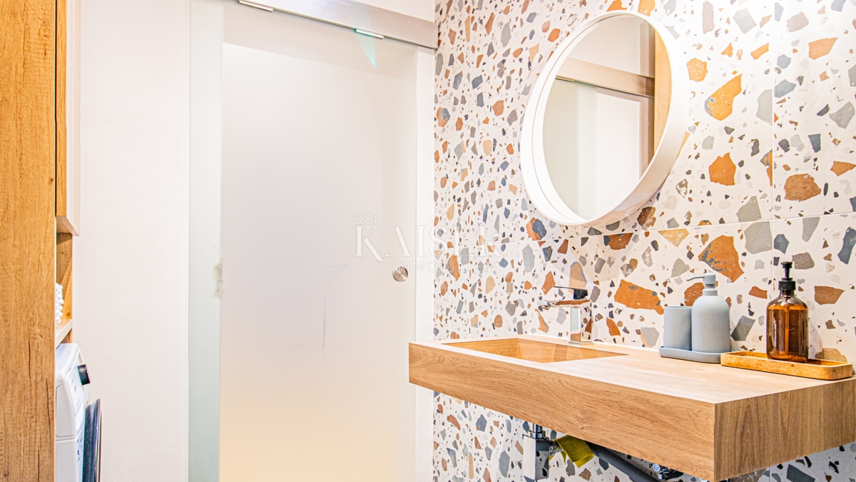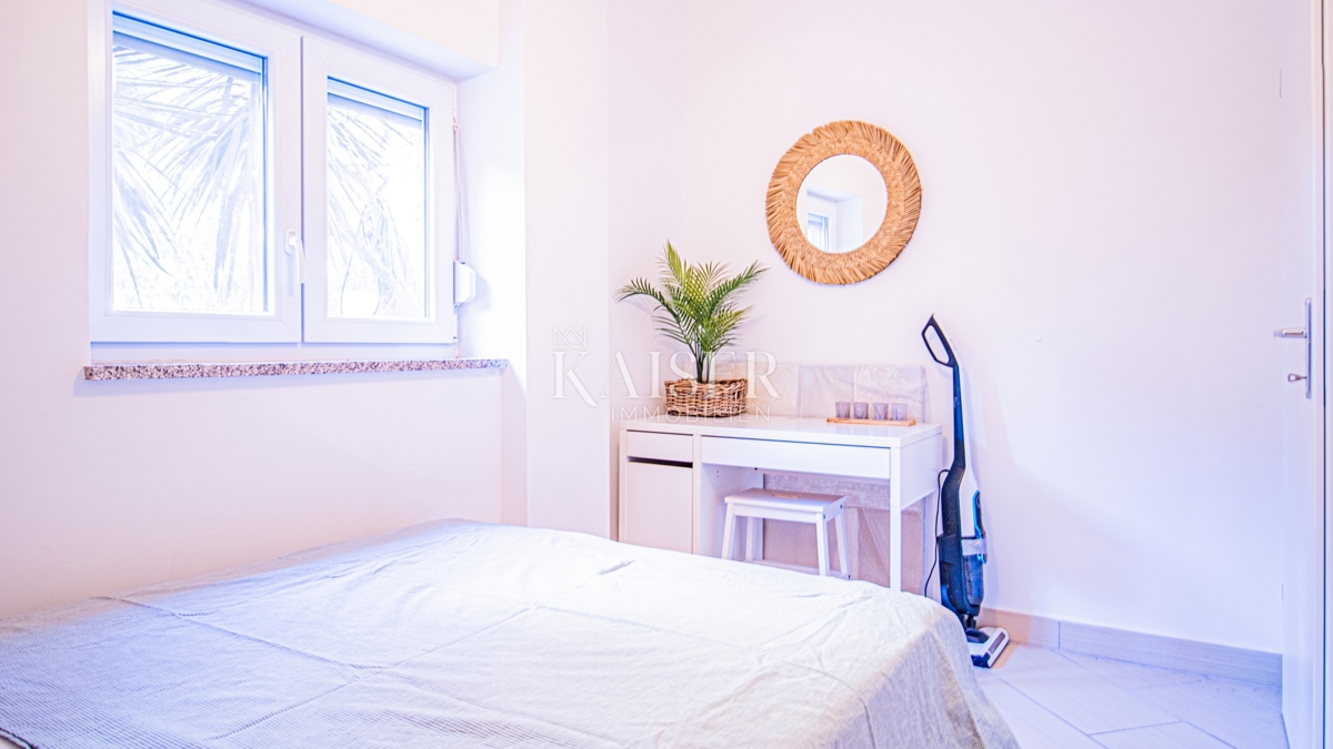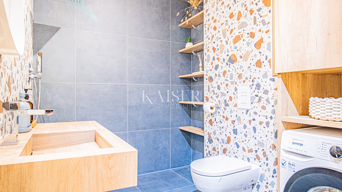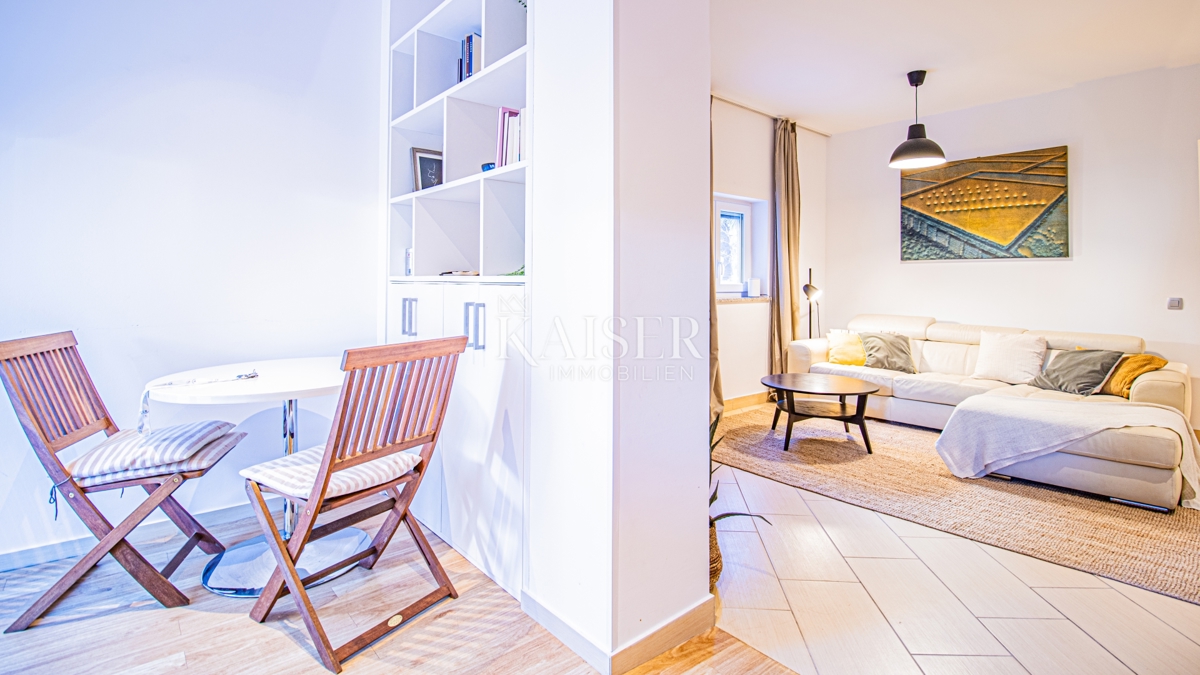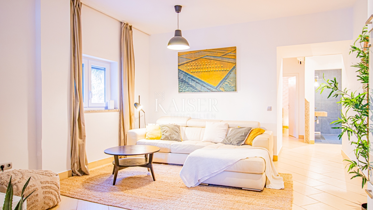 Kaiser Immobilien nudi u prodaju potpuno namješten stan u prizemlju moderne zgrade u samoj marini, svega 150 metara od mora! Ova atraktivna nekretnina površine 61,17 m² pruža savršen spoj udobnosti, funkcionalnosti i vrhunske lokacije. Ne propustite p