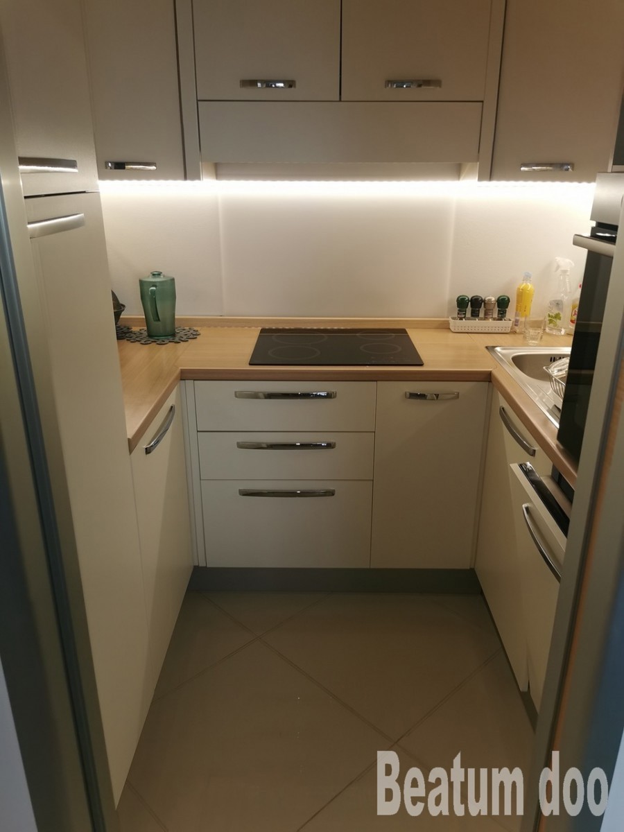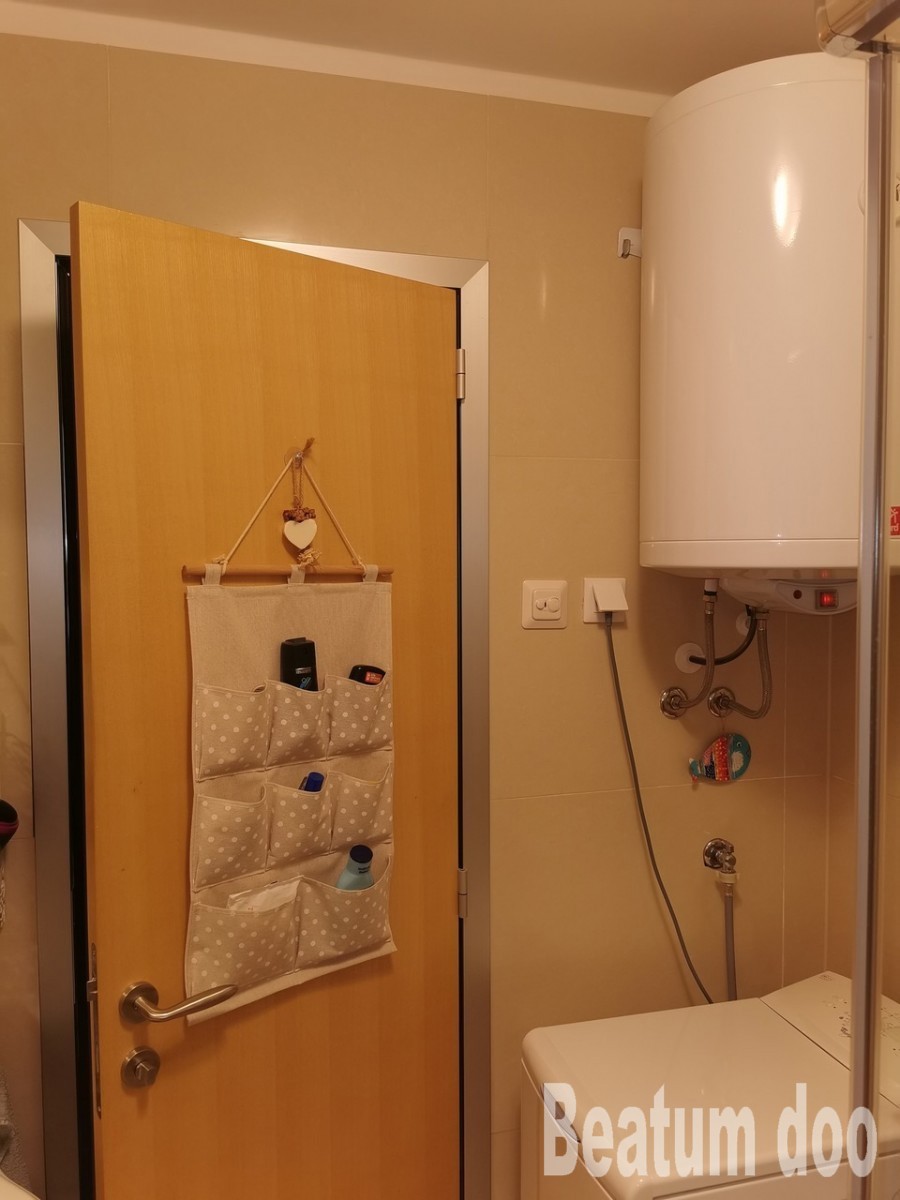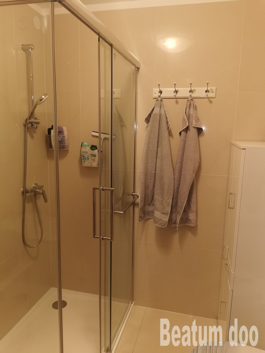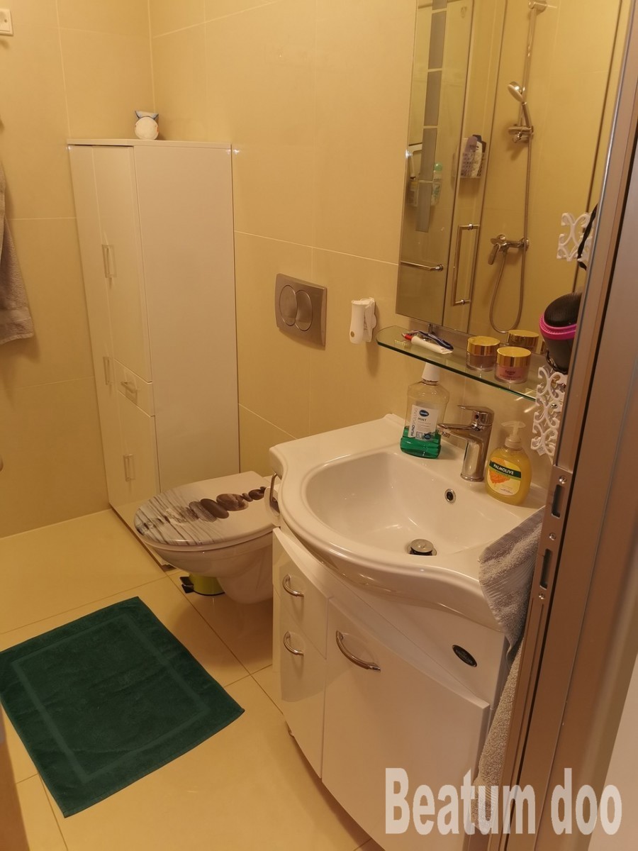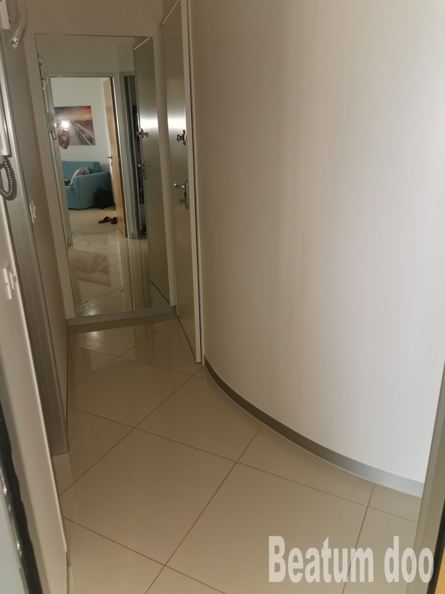 Stan na prvom katu sa pogledom na grad i more Dvije spavaće sobe,jedno kupatilo,dnevni boravak,kuhinja,kompletno namješten sa kvalitetnim namještajem,podno grijanje,zgrada ima lift. Garaža