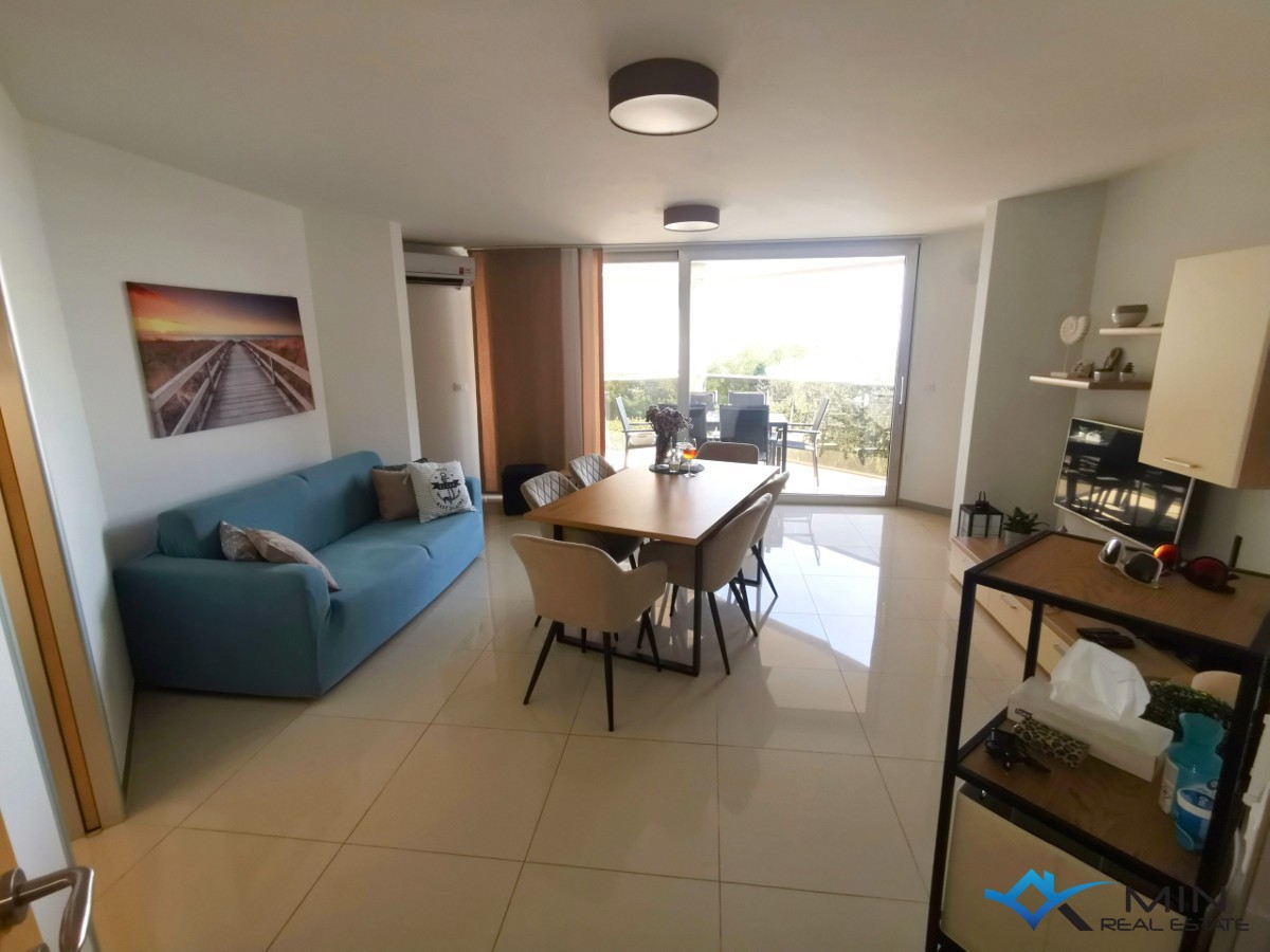 Prilika za kupnju stana sa garažom na mirnoj lokaciji u Novigradu. Stan je smješten na 1. katu zgrade koja ima lift. Stan ima 64 m2 i sastoji se od hodnika, spremišta, kupatila, kuhinje i blagovaonice, 2 spavaće sobe i dnevnog boravka s izlazom na natkri