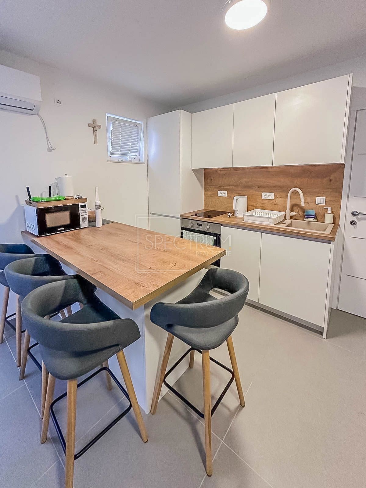 Istra, Novigrad okolica Prodaje se renoviran stan u okolici Novigrada, udaljen svega 500 m od mora. Stan se nalazi na 1.katu stambene zgrade. Površina stana iznosi 39.80 m2. Stan se sastoji od dnevnog boravka sa kuhinjom i blagovaonicom open space konce