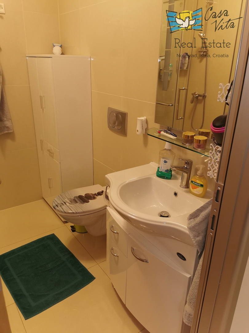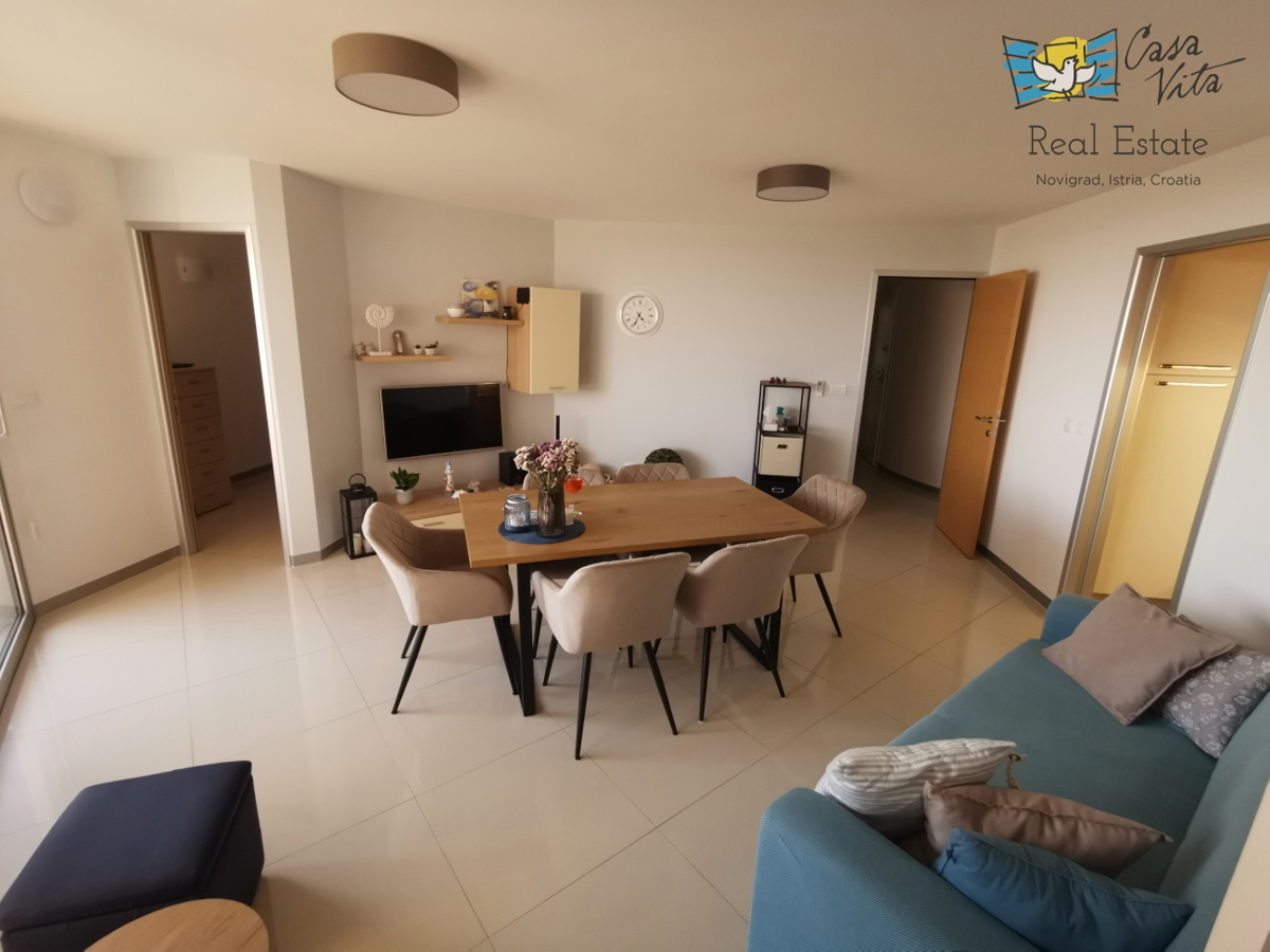 Prodaje se prostrani 2-sobni stan u Novigradu, površine 64 m2, smješten na prvom katu zgrade izgrađene 2008. godine. Ovaj stan nudi savršen spoj udobnosti i moderne arhitekture na atraktivnoj lokaciji. Stan je izvanredno pozicioniran pored mora, što om