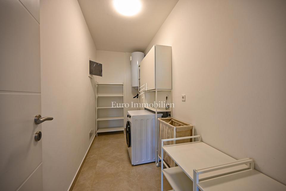 Novigrad - moderan stan smješten na 1. katu zgrade s pogledom na more, mirna lokacija Sastoji se od dvije spavaće sobe, kuhinje sa blagovaonicom, dnevnog boravka, dvije kupaonice, unutarnjeg spremišta/garderobe i prostranom terasom koja pruža predivan po