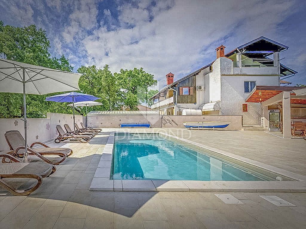 Novigrad okolica, prostrani stan sa velikom okućnicom i bazenom