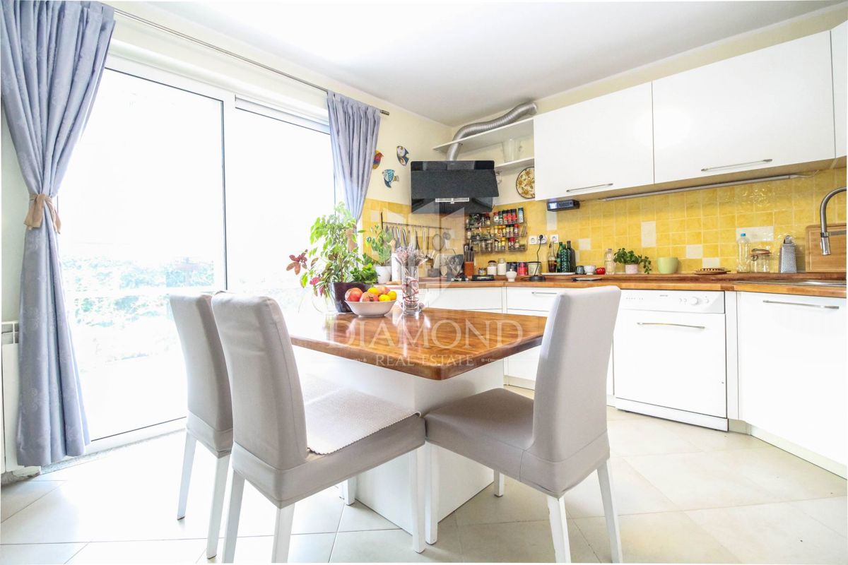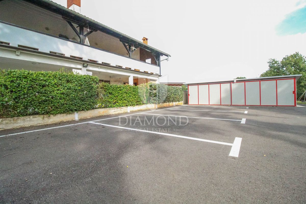 Istra, Novigrad okolica Prodaje se prostran stan sa bazenom u prizemlju nedaleko od Novigrada. Površina stana iznosi 176.59 m2, a sastoji se od dnevnog boravka zajedno sa blagovaonicom, kuhinje, 3 spavaće sobe, hodnika, ostave, kupaonice te wc-a. Dnevni